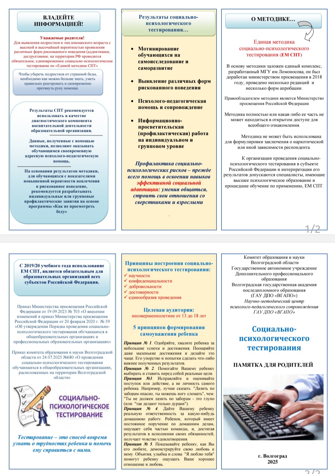 «Результаты тестирования не являются фактическим или юридическим основанием для постановки тестируемого на какой-либо вид учёта (внутришкольный, наркологический и т.п. или для постановки какого-либо диагноза). При желании обучающегося или его родителей результаты тестирования могут лишь мотивировать их самостоятельно обратиться за консультацией к профильным специалистам, а также воспользоваться предложениями по добровольному участию в программах или мероприятиях, направленных на развитие навыков личностно-доверительного общения, качеств личности, обеспечивающих оптимальную социально-психологическую адаптацию».
